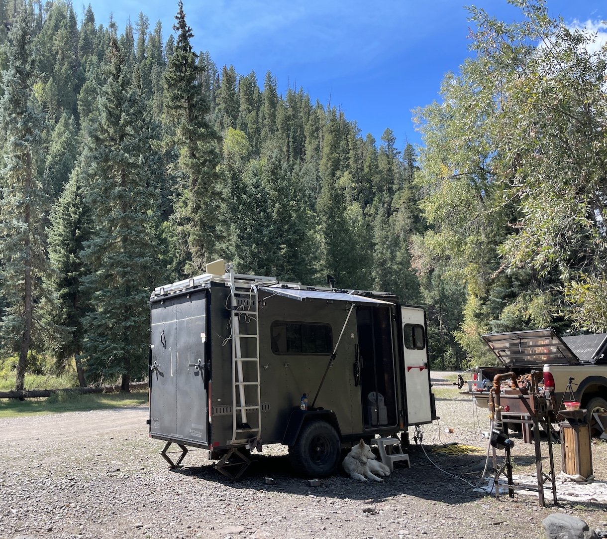 After graduation, my wife (fiance at the time), my dog, and I moved to southwest Colorado where we lived and worked out of am 8x12’ cargo trailer at campsites in the National Forest.